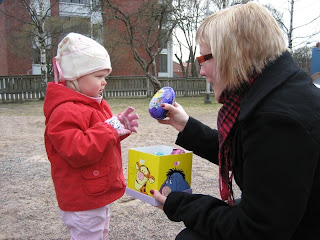 Heini-mukavaakin-mukavampi-täti tämän paketin jälkeen ;) toi Aadalle 3 isoa suklaamunaa ja tipuja.